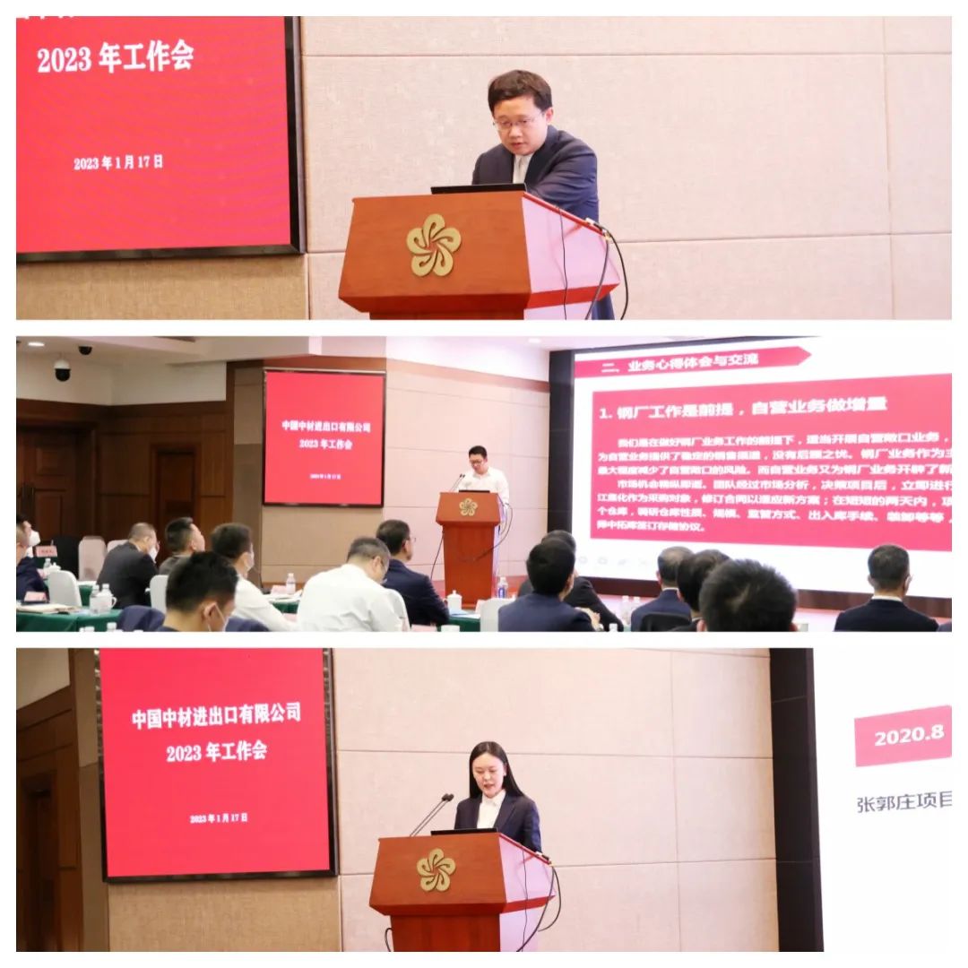 报告研判分析了2023年形势,提出了公司2023年重点工作:一是围绕提高竞争能力、提高效益,集中精力抓好经营工作。按照集团“一利五率”指标要求,努力实现销售收入同比增长6%,利润总额同比增长21%,净资产收益率提高1.16个百分点;全员劳动生产率提高至184万元/人;营业现金比率在保持稳定的基础上,力争更好水平;逐步压降资产负债率;提高研发经费投入强度。二是坚持预防为主,防范和化解各类风险。在坚守三条底线的基础上,探索追求三条高线:“先收款、高毛利、快周转”。三是全力推进改革、转型和信息化等重点工作。适时启动第二轮混合所有制改革和股改工作,完善公司法人治理结构和监督制约体系。继续探索适合贸易行业的供应链模式,不断提高企业核心竞争力。四是以合规管理和全面预算管理为重点,提升运营、财务、人力等各项管理工作质量,助力公司高质量发展。五是进一步加强党建,把党的二十大精神转化为指导实践、推动工作的强大力量,围绕“一个中心两个度”“四个提高”“一虚两实”锤炼作风,为企业改革发展提供坚实的保障 。