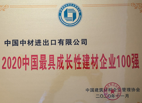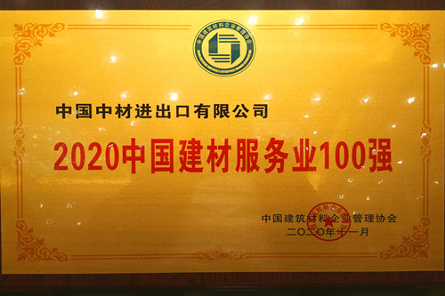 公司作为建材服务业企业已连续多年获得中国建材服务业100强和最具成长性建材企业100强。在今年发布的榜单中,公司位列“2020中国建材服务业100强”第7位,“2020中国最具成长性建材企业100强”第12位, “2020中国和谐建材企业”第5位。
