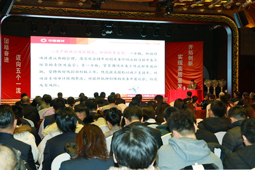 公司副总经理曹志宏传达了中国建材集团2020年工作会议精神。公司党委书记、执行董事、总经理韩瑞明作了“抓巩固、抓创新、抓落实,凝心聚力,开创新局面、再上新台阶”的报告,全面回顾总结了2019年工作。一是围绕目标任务,推进转型升级。二是围绕“三精管理”的总要求,努力抓好管理提升。三是围绕“两手抓、两促进”,抓好党建工作。会议表彰了2019年度先进集体、优秀员工及优秀新员工。