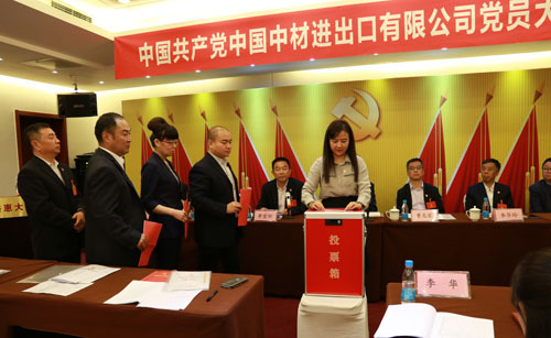 大会审议通过了党委和纪委工作报告,选举产生了中国共产党中国中材进出口有限公司新一届党委委员和纪委委员。马强、刘二烈、邵华、李华玲、李宗怀、曹志宏、韩瑞明(以姓氏笔画为序)当选为党委委员,李华玲、张俊奇、唐旭东(以姓氏笔画为序)当选为纪委委员。在随后召开的党委第一次全体会议上,韩瑞明当选为了中国中材进出口有限公司党委书记,李宗怀当选为了中国中材进出口有限公司党委副书记。在纪委第一次全会上,李华玲当选为了中国中材进出口有限公司纪委书记。