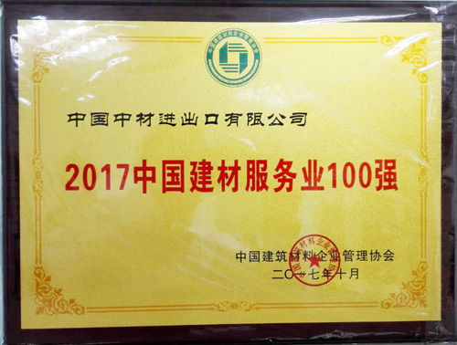 近日,中国建材企管协会举办“2017中国建材企业创新发展论坛暨2017中国建材企业500强、建材服务业100强、民营建材企业100强、最具成长性建材企业100强和建材园区20强”发布会。我公司入围“中国建材服务业100强(第4名)”。