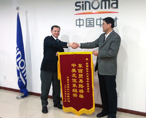 近日,美国驻华大使馆农业贸易处主任Ralph Bean一行到访进出口公司,与公司董事长、总经理韩瑞明,副总经理李宗怀及饲料部相关业务人员进行座谈。Ralph主任对进出口公司近年来饲料业务板块的快速发展所取得的成绩表示赞赏,并高度评价了进出口公司在开展米糠贸易中做出的积极努力。座谈中,Ralph Bean主任还对进出口公司DDGS、苜蓿草、乳清粉等业务的开展给予了宝贵意见。进出口公司董事长、总经理韩瑞明对美国驻华使馆农业贸易处在公司业务发展中所给予的支持与帮助表示感谢,并向Ralph Bean主任赠送了锦旗。