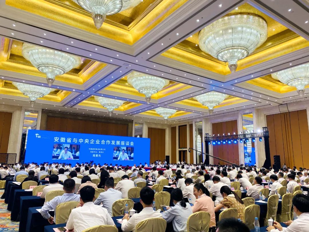 座谈会上,中国建材集团、中国兵器装备集团、中国电子科技集团、中国石油化工集团、国家能源投资集团、中国建筑集团、中国节能环保集团、中国中铁股份有限公司、中国交通建设股份有限公司、中国电力建设集团、中国黄金集团负责同志作交流发言,安徽省与央企进行了合作项目集中签约。周育先主要介绍了中国建材集团在安徽省投资情况,对安徽省委省政府对集团在皖业务的长期支持表示感谢。他表示,基于安徽省良好的营商环境与政策导向,中国建材集团以凯盛科技显示玻璃、新能源玻璃等“卡脖子”材料为代表的新材料业务在皖发展顺利,取得一系列突破成果。面向未来重要的战略机遇期,希望双方基于科技创新、产业投资、基金赋能等平台,进一步扩大深化合作,推动战略合作落地,打造央地合作典范。